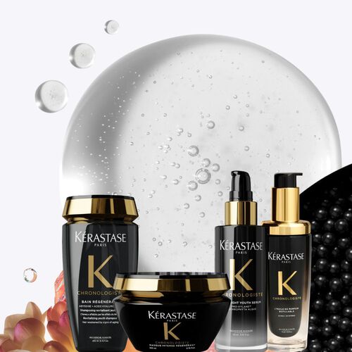 Expertly formulated with high-quality ingredients-Hyaluronic Acid, Abyssine, Pro-Xylane™ and Ochrophyta Algae –,Chronologiste revitalises hair weakened by signs of ageing for fuller, healthier-looking and smoother hair.